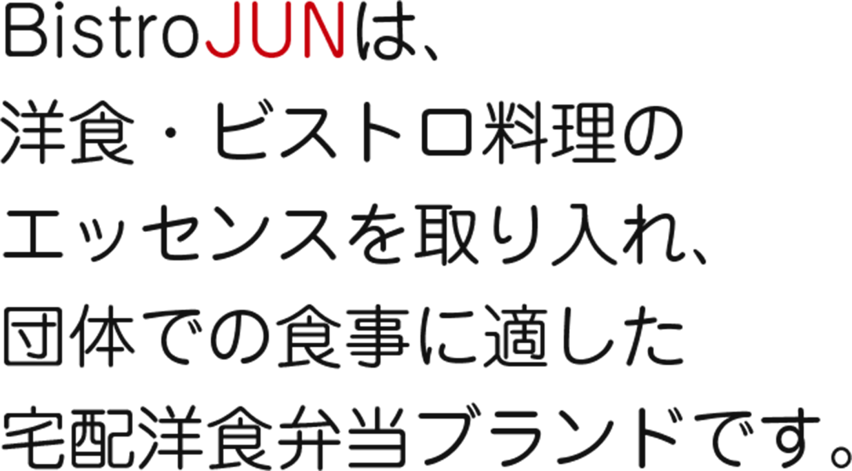 Bistro JUNのお弁当は、複数名で同時に召し上がる場を想定し、味・香り・食感のバランスを構成しています。